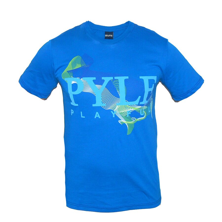 Мъжка тениска PLAYFUL, 100 % памук, синя. Произведено в България. Щампата е гумирана. Високо качество на материя и изработка.