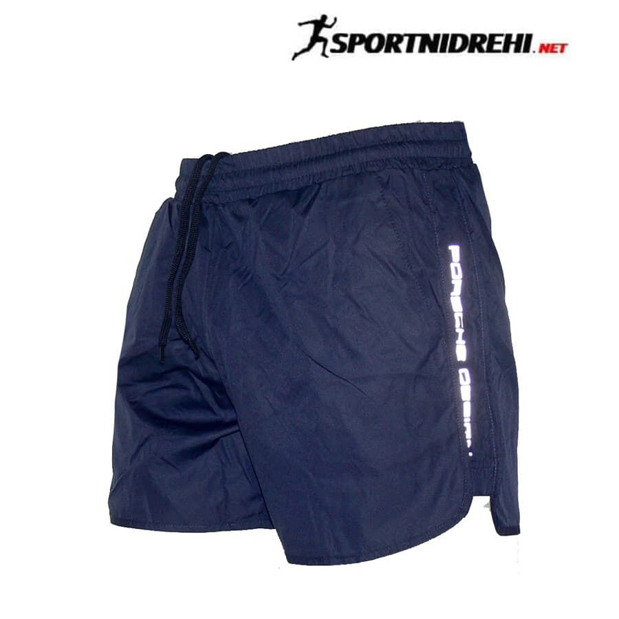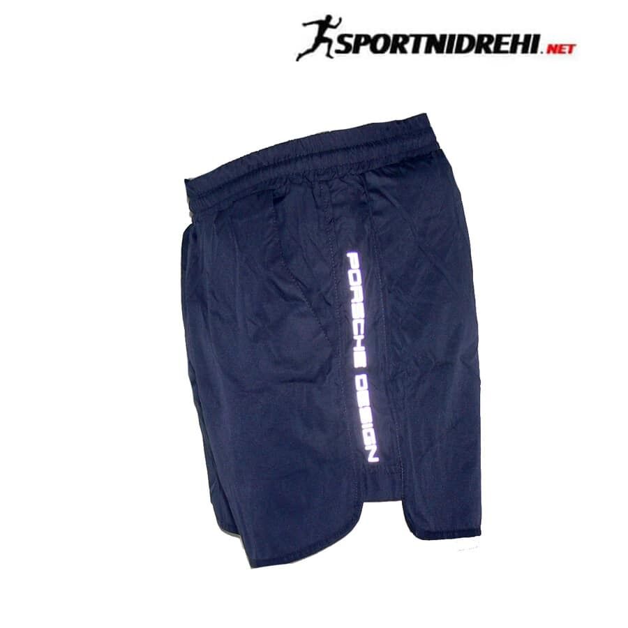 Мъжки бански P5000, тъмносини, бързосъхнещ полиестер. Материята е бързосъхнещ полиестер. Банските имат мрежест бандаж, връзки за стягане, 2 джоба отпред без ципове, и 1 отзад с цип. Модела е уголемен с един размер.