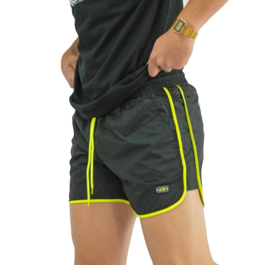 Мъжки бански RAYMOND 193, черни, полиестер. Произведено в България. Материята е бързосъхнещ полиестер. Банските имат мрежест бандаж, връзки за стягане, 2 джоба отпред и 1 отзад без ципове. Високо качество на материя и изработка.