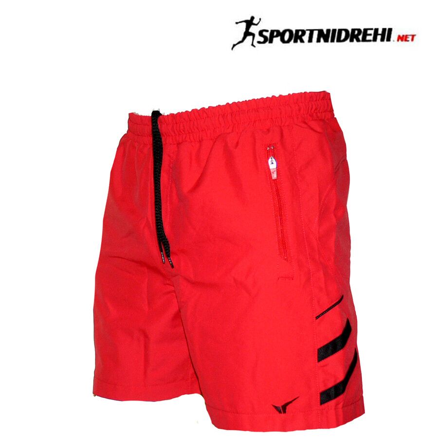 Мъжки спортни шорти REDICS, червени, полиестер. Произведено в България. Материята е бързосъхнещ полиестер. Шортите имат мрежест бандаж, връзки за стягане и 2 джоба отпред с ципове. Високо качество на материя и изработка.