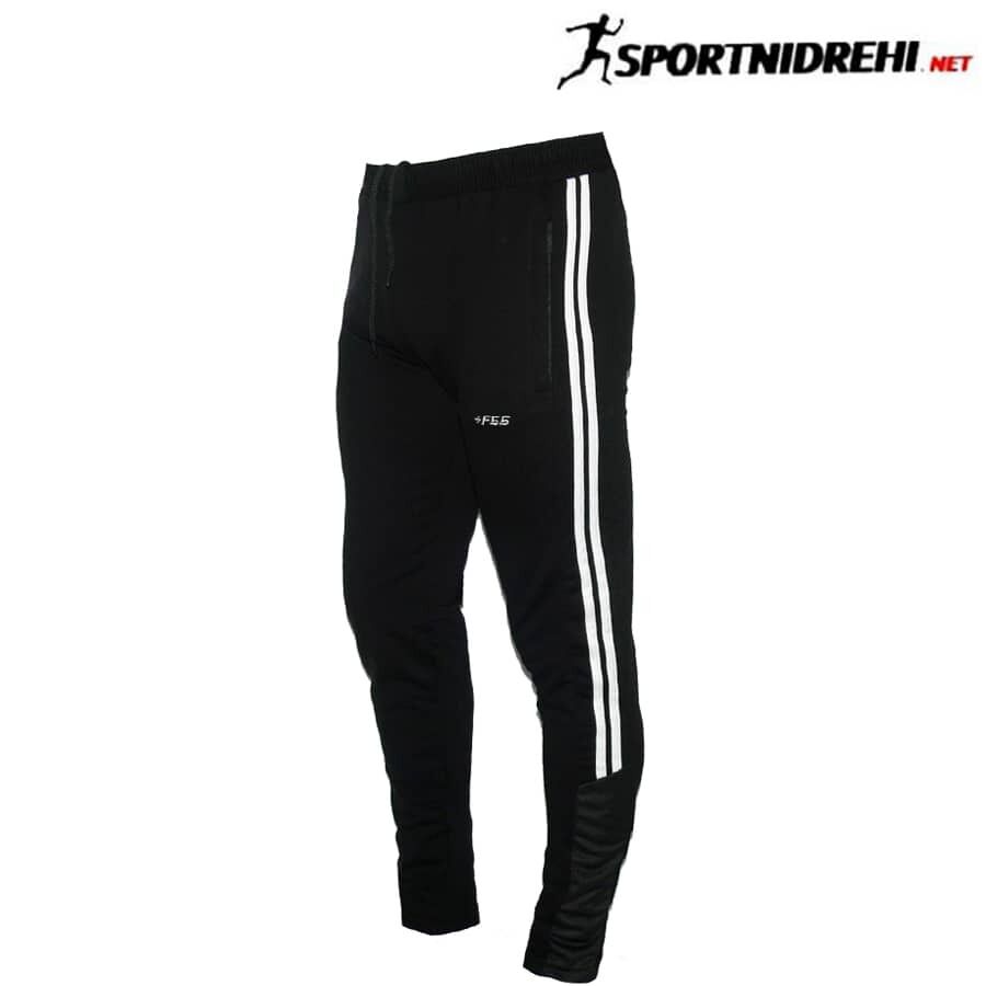 Мъжко спортно долнище F55, черно, памук и ликра. Долнището има 2 джоба отпред с ципове. Модела е стеснен долу на крачола. Долнището е подходящо за пролетно-есенния сезон.