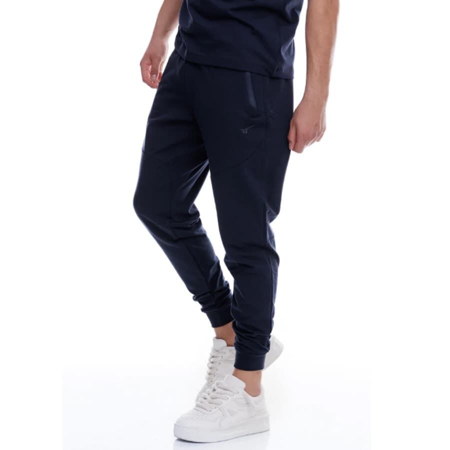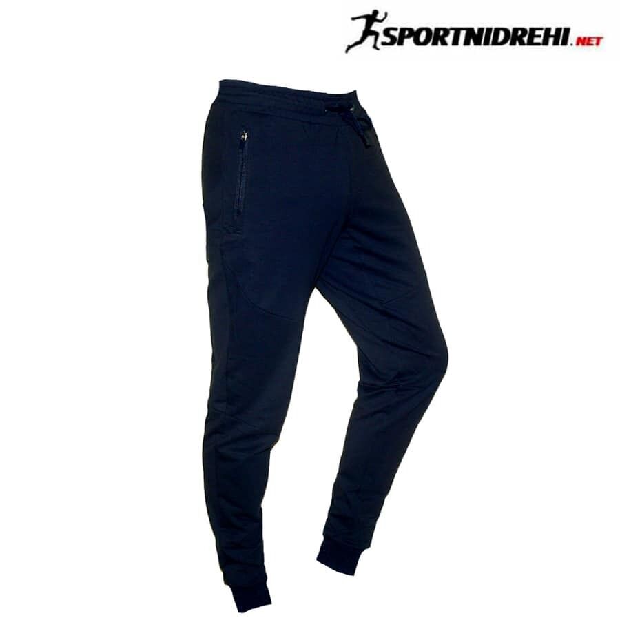 Мъжко спортно долнище REDICS 230019/2, тъмносиньо, памук и ликра. Произведено в България. Материята е 77% памук, 17% полиестер и 6% еластан. Долнището е стеснено долу на крачола с широк ластик. Има два джоба отпред с ципове. Високо качество на материя и изработка.