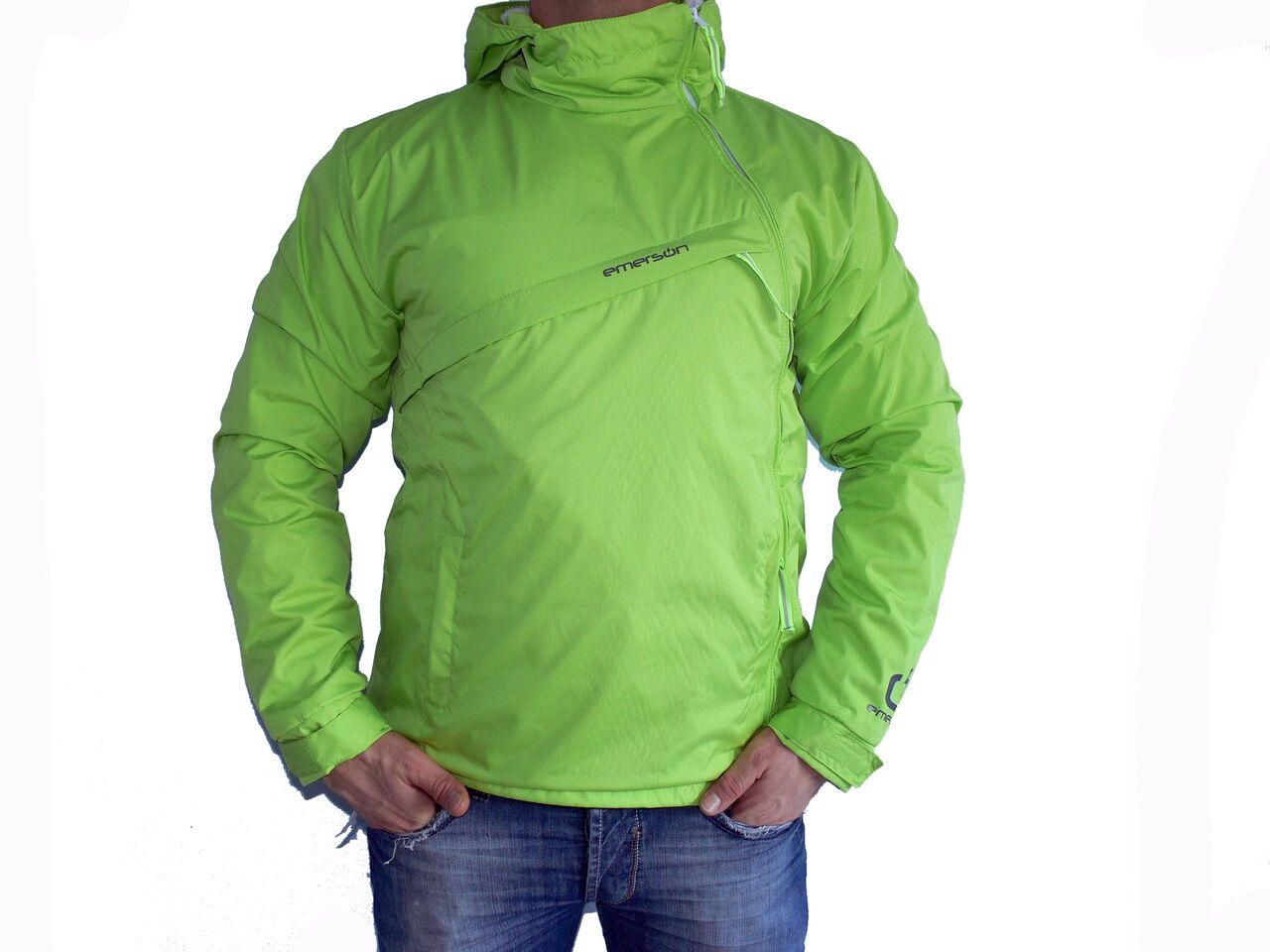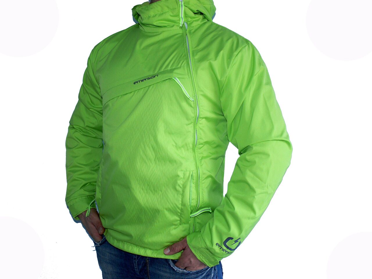 Мъжко спортно яке EMERSON, полиестер, зелено. Якето има поларена подплата, три външни джоба и качулка. Подходящо е за сезона пролет-есен.
